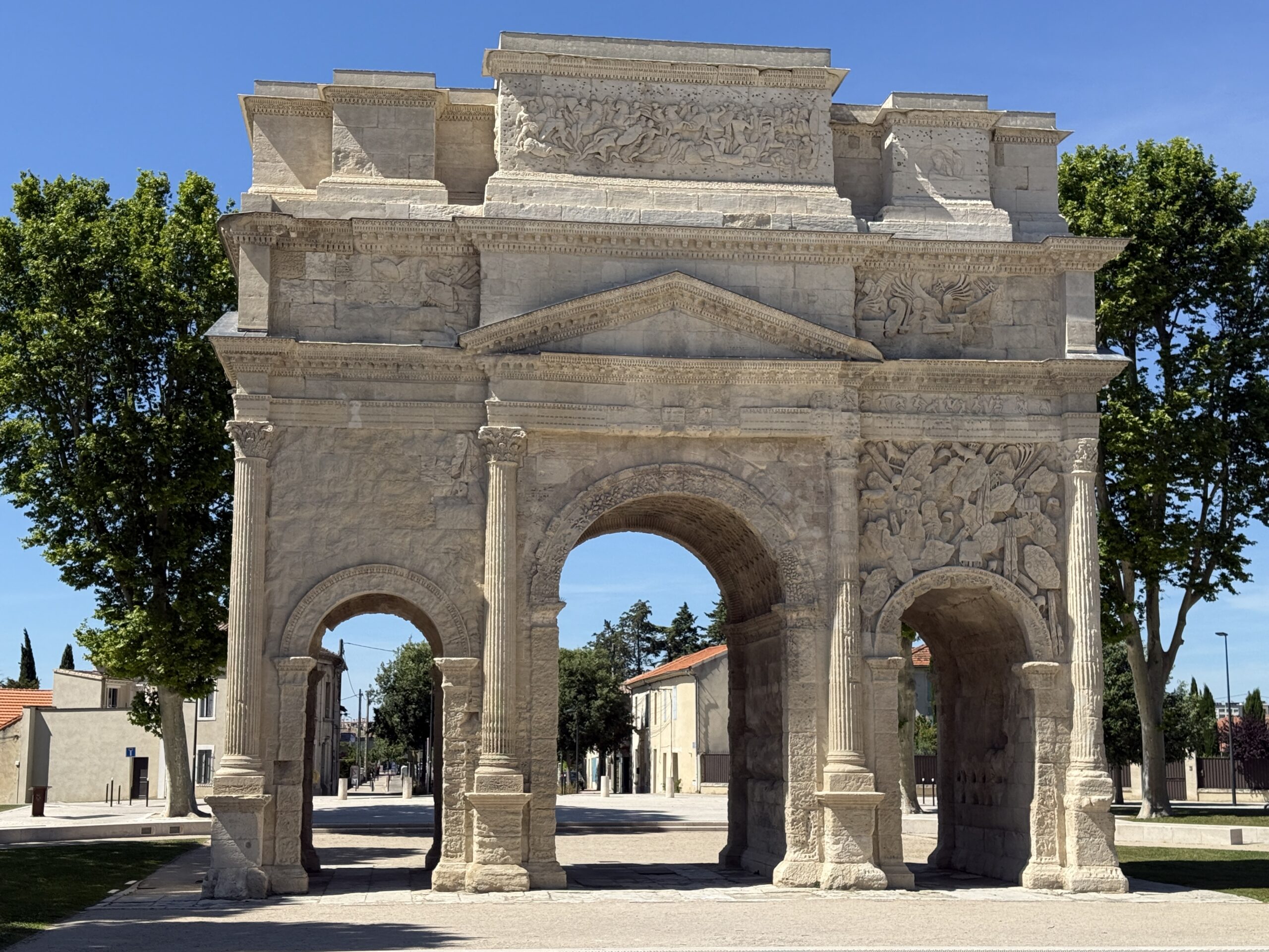 We drove out to Orange for their market day, the first of many such excursions we plan over the next weeks using Marseille as a base for exploring the villages and valleys. I bought a truffle for 3 euros. Orange has one of the oldest stages in the world, built in the 1st century, and the original of the Arc de Triomphe, dating from 19 CE, 2006 years ago.