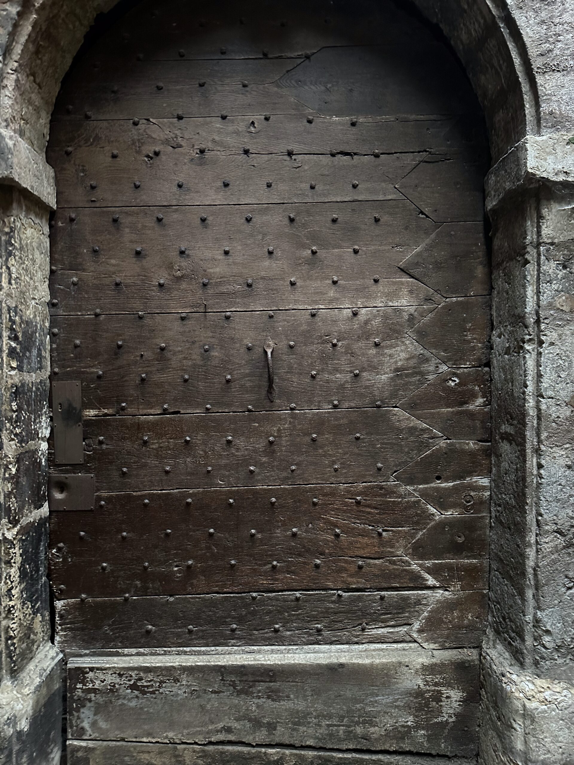 We spent a day walking the ramparts, being invited to imagine an enemy attack. Carcassonne is a wonder of medieval military science. Every nook and cranny is designed to foil a siege, which was the main way war was waged prior to 1350, when the cannon was invented. Slits in the wall are angled in such a way that an arrow could be shot without the shooter being exposed. Entrances to the fortress city are crooked so battering rams can’t get up any momentum. Platforms overhead allow soldiers to drop stones on attackers’ heads (although not boiling oil, as that was too expensive). Wall surfaces are curved, so it takes more force to knock them down. It’s amazing how much thought went into how best to kill the other guy.