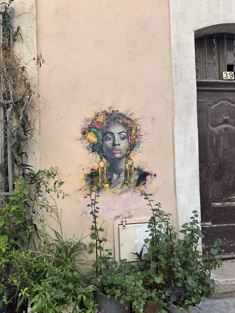 We have been spoiled thus far, wandering around charming provincial towns of Orange, Avignon, Cassis, Uzès, and the big cities of Marseille and Lyon without feeling like we were really at Epcot. Not so with Arles. Gaggles of 30 visitors wearing headphones connected to their guides’ transmitters clog every adorable pedestrian intersection. We are not judging; we too are visitors. However, we feel more inclined today to sit in a cafe than to ogle ancient ruins. Tomorrow is another day!