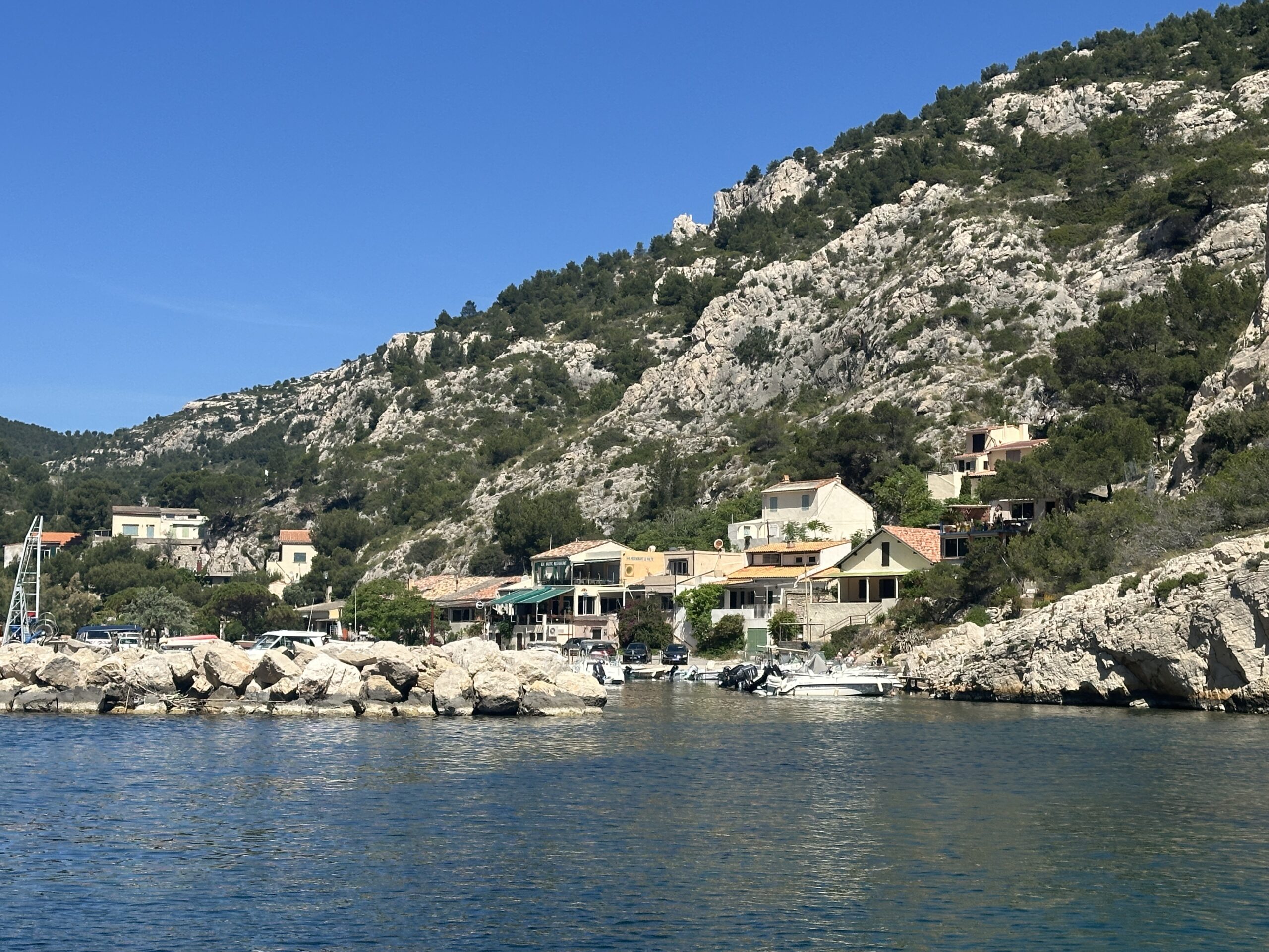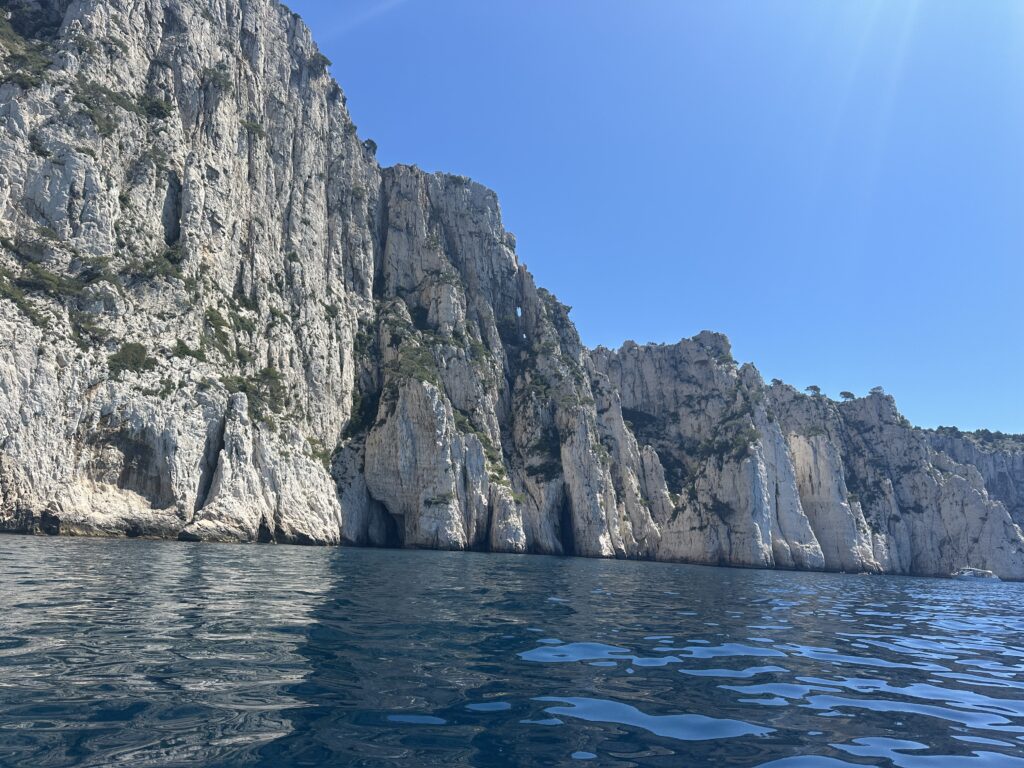 A calanque is something between a sheltered harbor and a fjord, with its Mediterranean waters around 60F at the current moment. Marseille itself is located in a giant one but smaller ones notch the coastline in this area. Many have restaurants and fishing villages nestled in them–some accessible overland and some only by boat.