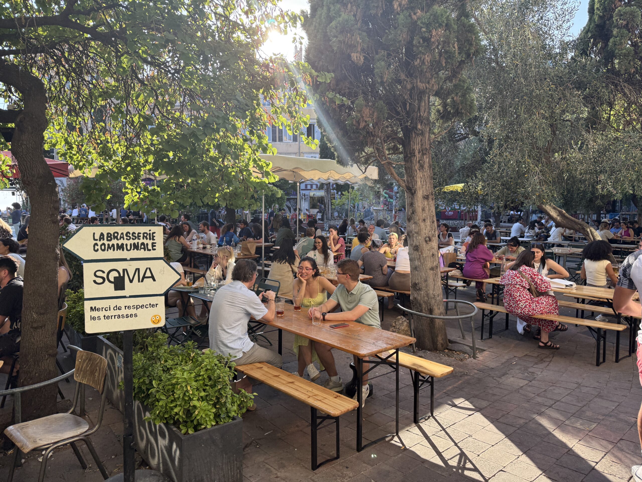 In Paris, we saw the occasional beggar. In Lyon, we saw a nearly hidden park with a sea of tents which, sadly, are familiar to any Angeleno.