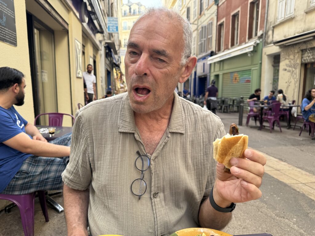 Here are our last days in Marseille before we go on the road from the 7th-18th. We took a food tour in the Cours St. Julien neighborhood–think Reeperbahn–thousands of young people guzzling beer and hanging out all night.