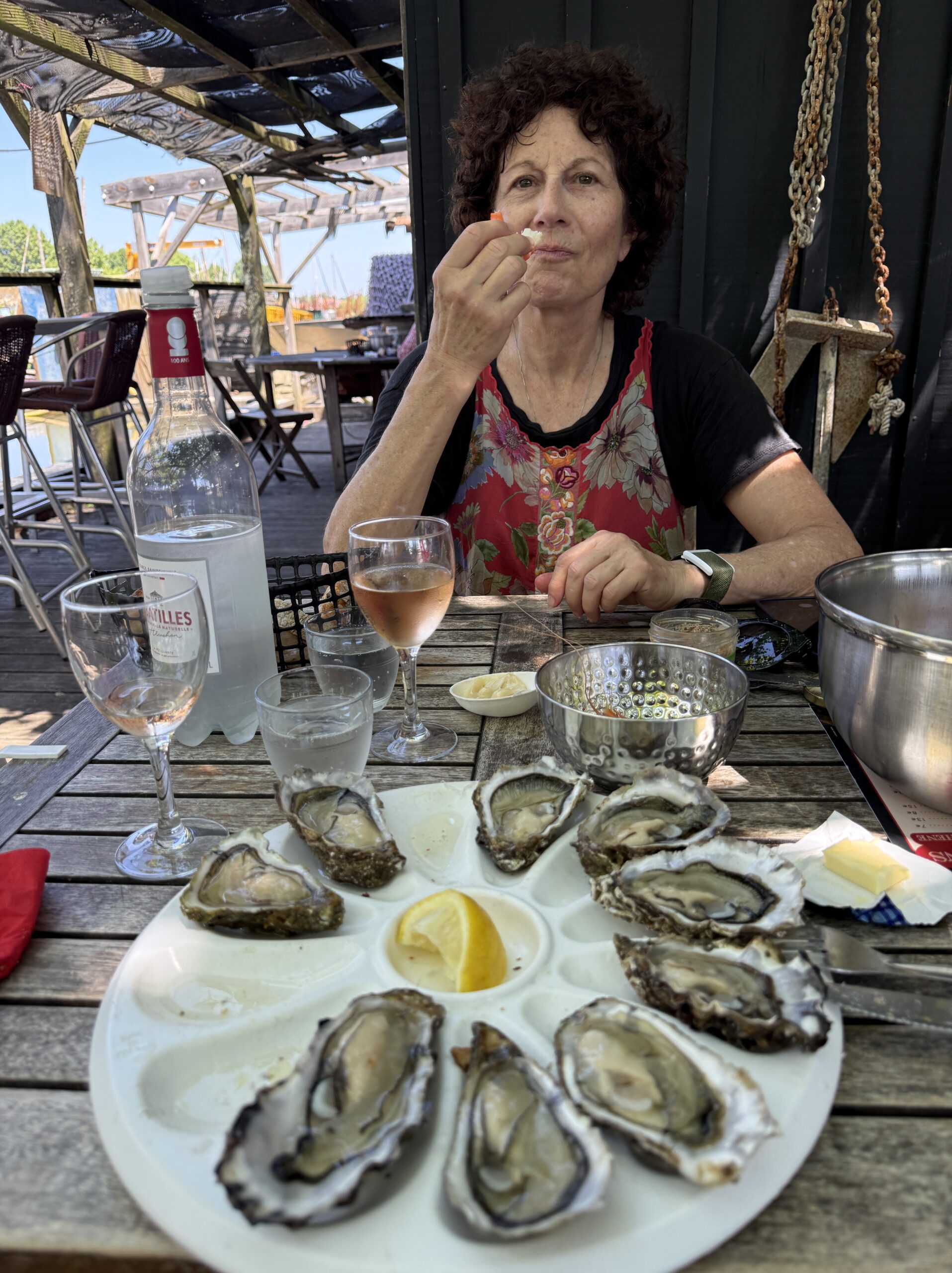 We drove out to Arcachon on the Atlantic coast and enjoyed their oysters with local rosé. The fish shack reminded me of Hog Island and of lobster shacks in Maine. The wow attraction in the area is a huge sand dune.