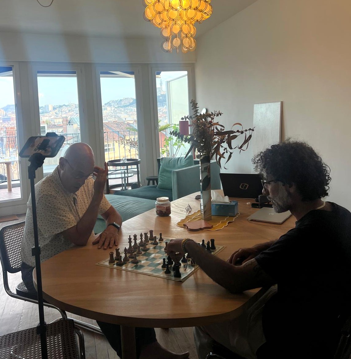 Wednesday saw us head for Avignon, where we visited the old Jewish neighborhood, a temple, a cemetary. I was too distracted by a market called Les Halles to think about art much. Our last night saw me prep a pilaf for one of the managers of Marseille Echecs and his friend. Maurizio is from Colombia and a bit stronger than I. I couldn’t tell if he let me win the first game or if he just blundered but I suspect the former.